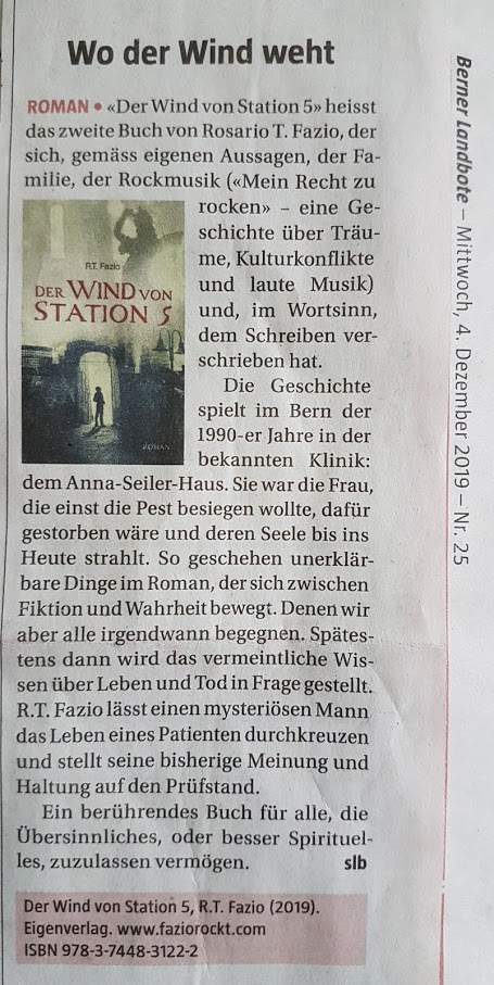 4. Januar 2020QuellecairHinterlasse einen Kommentar auf Wo der Wind weht … Wo der Wind weht … ‹Der Wind von Station 5› im Berner Landbote vom 4. Dezember 2019 Weitere aktuelle Stimmen zum Buch Teilen mit:TweetGefällt mir Wird geladen … Ähnliche Beiträge